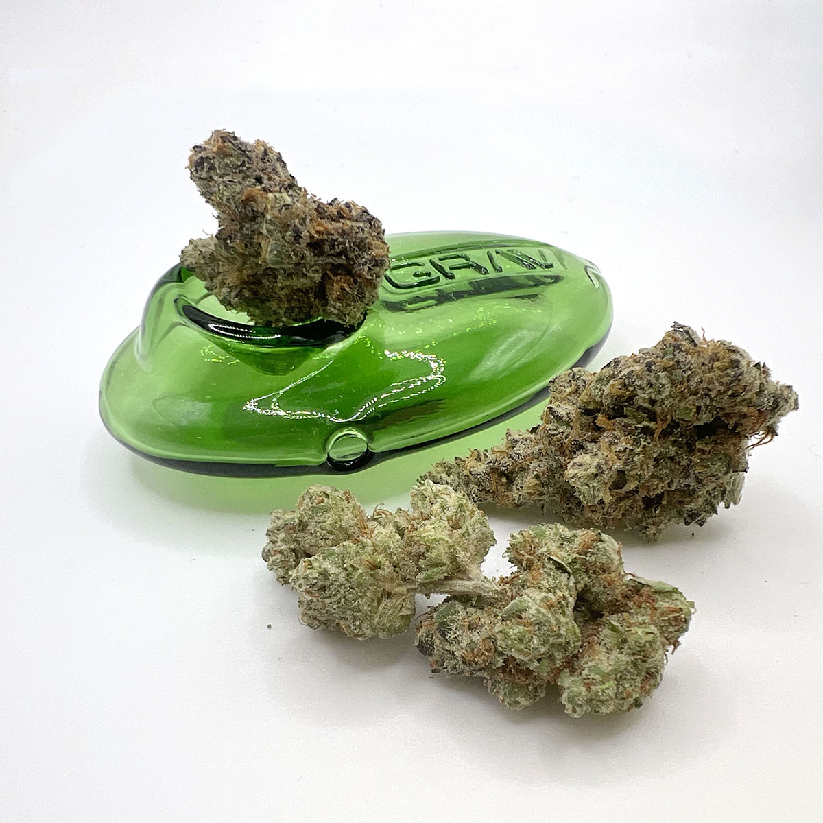 A few products consistently show up across the most locations. Atomic Breath Whole Flower 3.5g (21 stores), Titan Express Whole Flower - 3.5g (16 stores), and Dark Heart Collection Zesty Garlic Cookies Whole Flower 3.5g (15 stores).